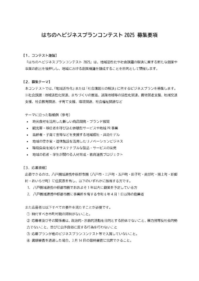 ★はちのへビジネスプランコンテスト2025 募集要項2